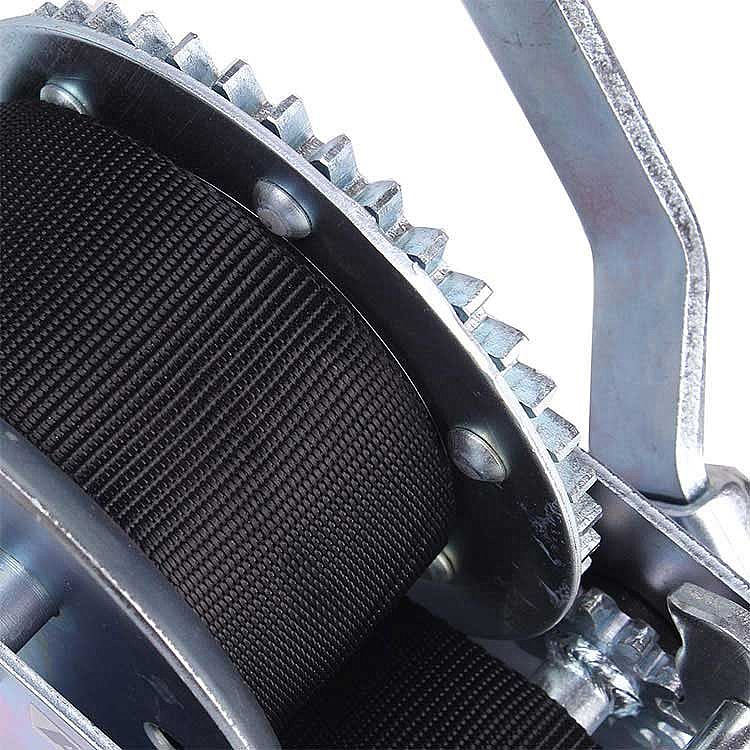 듀얼 내마모성 블랙 윈치 벨트가 장착되어 있습니다. 고리가있는 윈치의 링크 부분은 폭 5cm, 두께 3mm의 이중 직물로 만들어졌습니다. 다층 스티칭은 제품의 연결된 부분을 더욱 견고하고 내구성있게 만듭니다.