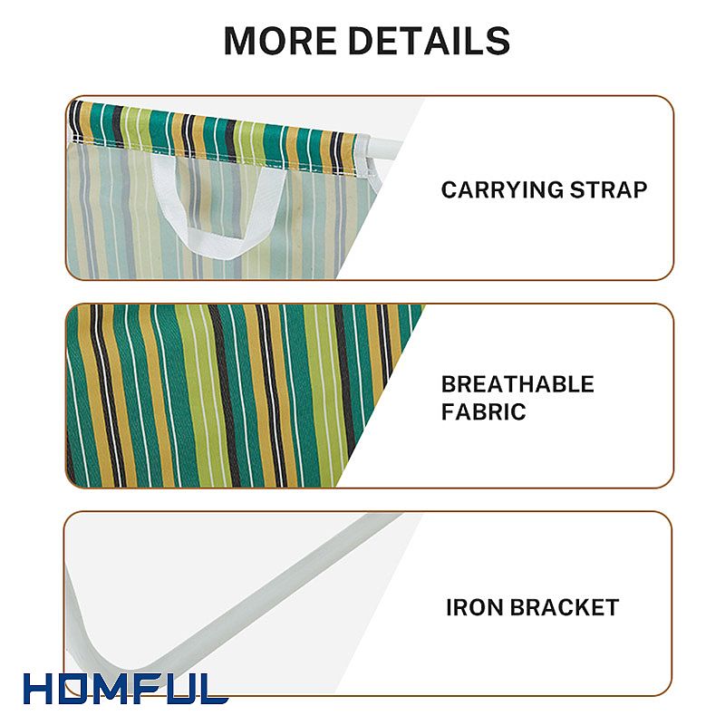 휴가처럼 보이지만 필수품처럼 팔립니다. 60C27C 경량 휴대용 캠핑 의자는 “휴대가 간편하고, 설치가 빠르며, 안정적으로 앉을 수 있는” 컴팩트한 제품을 원하는 구매자를 위해 제작되었습니다. 줄무늬 600D 폴리에스터 시트는 생동감 넘치는 매력을 선사하면서도 통기성과 지지력을 유지해 해변에서의 긴 하루, 캠핑장 휴식, 야외 행사에 적합합니다. 하단의 철제 프레임은 안정감 있는 지지력을 제공해 대여용, 유동인구가 많은 리조트, 신뢰성을 요구하는 가성비 중심 채널에 이상적입니다. 가장 큰 특징은 안전 잠금 장치로, 의자를 펼쳤을 때 흔들림을 줄이고 사용자의 안정감을 높여줍니다. 상단의 휴대용 손잡이/스트랩을 더하면 고객이 나가면서 바로 집어가는 제품이 되며, 판매처에서는 재주문이 끊이지 않습니다. 크기: 54×49×63cm. 로고, 포장, 색상 맞춤 제작(OEM) 가능.