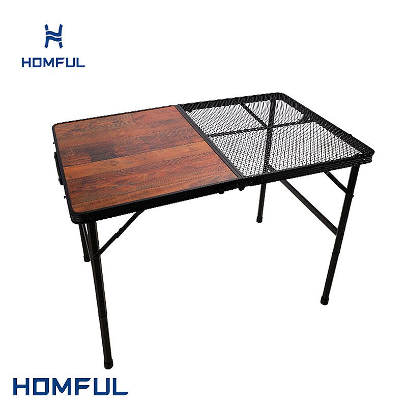 한쪽에는 넓은 조리대가 있고, 철제 메쉬 테이블 상판이 있어 맛있는 식사와 좋아하는 바비큐 요리를 쉽게 지글지글 끓일 수 있습니다. 반대편에는 캠핑 모험 중에 피크닉을 즐기고, 식사를 즐기고, 친구 및 가족과 함께 게임을 즐길 수 있는 충분한 공간을 제공하는 견고하고 교체 가능한 캠핑 테이블 상판이 있습니다. 테이블은 내구성이 뛰어난 MDF 패널과 알루미늄 다리로 만들어져 야외 요소를 견딜 수 있습니다. 게다가 원하는 높이로 설정할 수 있어 다양한 사용 사례에 적합합니다.