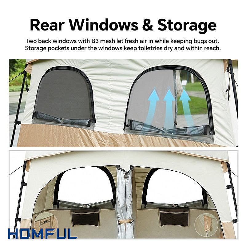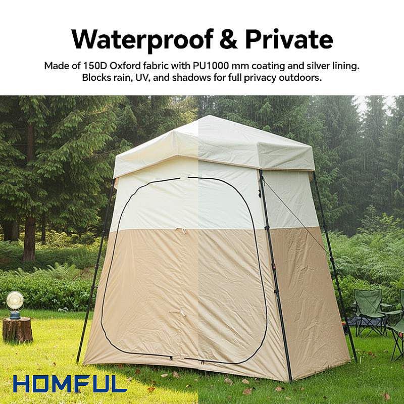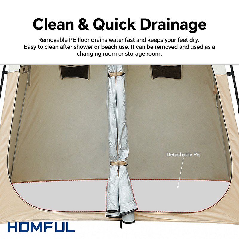 이 모델은 소재와 실용성 면에서 높은 만족도를 얻고 있습니다. 본체는 2000~3000mm 방수 성능을 자랑하는 150D 옥스포드 원단을 사용하여 일상적인 야외 환경에 적합합니다. 탈착식 PE 바닥은 물 빠짐이 빠르고 쉽게 닦을 수 있으며, 완전히 분리하여 간이 탈의실이나 수납공간으로 활용할 수 있어 판매점에서 특히 선호하는 부분입니다. 창 아래 수납 포켓은 세면도구를 건조하고 깔끔하게 정리하여 손쉽게 사용할 수 있도록 해주어 고객들이 만족하는 세심한 부분입니다.