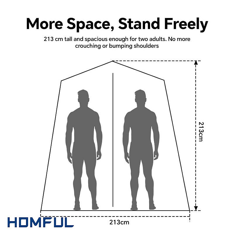 이 모델은 40L 샤워백을 걸 수 있어 별도의 구조물 없이 중력식 야외 샤워를 즐길 수 있는 진정한 샤워 시설을 갖추고 있습니다. 프레임은 가이 로프와 팩으로 안정적으로 고정되도록 설계되었으며, 허술한 팝업 텐트가 아닌 "진짜 제품"을 원하는 캠핑장 운영업체 및 소매 고객에게 신뢰할 수 있는 선택지로 자리매김하고 있습니다.