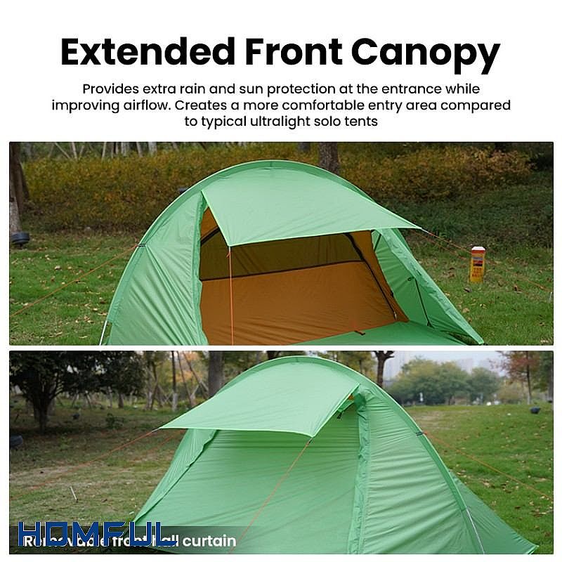 확장된 전면 캐노피는 실용성을 한층 더 높여줍니다. 캐노피는 입구를 비와 강한 햇볕으로부터 보호하고, 신발을 벗거나 배낭을 내려놓거나 잠자는 공간 바로 밖에서 간단하게 요리를 할 수 있는 쾌적한 전환 공간을 만들어 줍니다. 사용자에게는 이 캐노피가 기억에 남는 특징이 되고, 판매점에게는 제품 목록에서 차별화를 꾀할 수 있는 중요한 요소입니다.