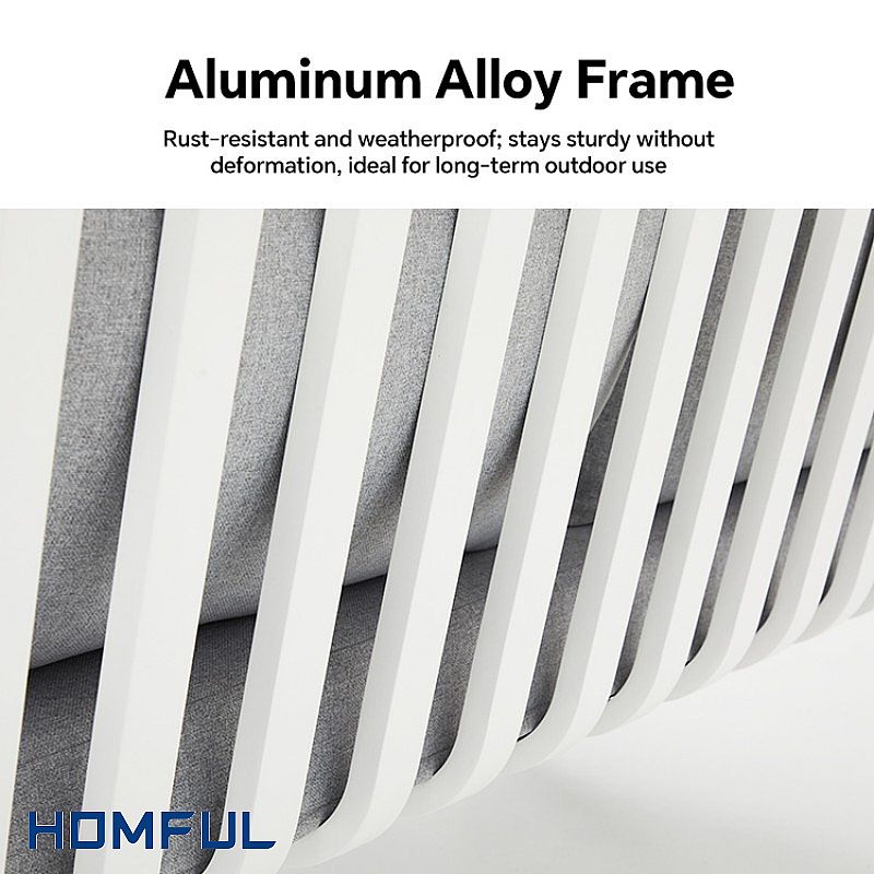 두툼한 좌석과 등받이 쿠션은 고탄력 폼으로 채워져 편안함과 형태 유지력을 오랫동안 유지합니다. 고급 야외용 원단은 자외선 차단, 가벼운 비 방지, 변색 방지 및 마모 방지 기능을 갖추고 있어 수명이 길습니다. 좌석 쿠션 아래의 슬랫 지지 구조는 통기성을 향상시키고 비가 온 후 건조 속도를 높여줍니다.