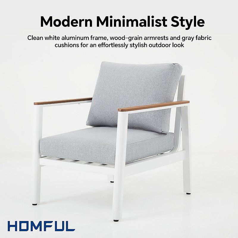 11C11D 모델은 모던한 디자인의 정원용 금속 소파 세트로, 깔끔하고 미니멀한 미학으로 야외 공간에 생기를 더합니다. 화이트 파우더 코팅 알루미늄 프레임, 나무 질감의 테이블 상판, 밝은 회색 쿠션의 조화는 개인 별장, 카페, 리조트, 발코니 등 다양한 공간에 잘 어울립니다.