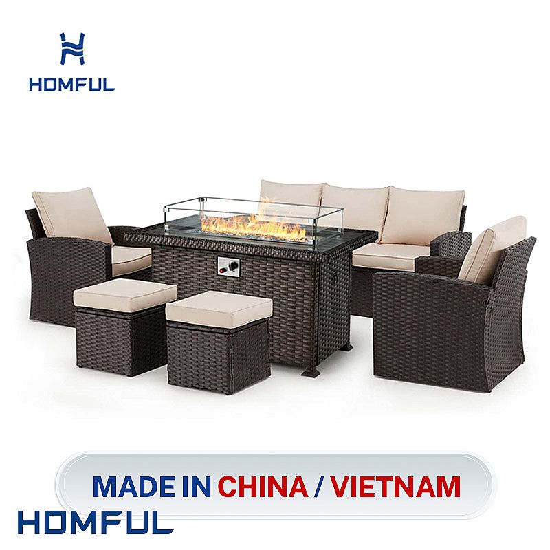 이 고급 6피스 라탄 소파 세트와 화덕 테이블로 야외 레크리에이션 공간을 업그레이드하세요. 공간 요구에 따라 3인용 소파, 2개의 긴 의자, 2개의 오토만을 다양한 방식으로 배치할 수 있습니다. 의 가구는 견고한 알루미늄 프레임과 직조된 PE 등나무를 사용하여 녹이 슬지 않고 오래 사용할 수 있으며, 고밀도 스폰지를 사용하여 좌방석과 등쿠션의 두께를 두껍게 하여 편안함을 더했으며, 방수 패브릭을 사용했습니다. 쿠션 커버는 지퍼 구조로 분리, 세탁, 교체가 간편합니다. 화덕 테이블은 추운 겨울에 편안한 캠프파이어 분위기와 충분한 따뜻함을 제공할 수 있습니다. 연기가 나지 않고 안전한 목재 f 대체재입니다. 화덕.