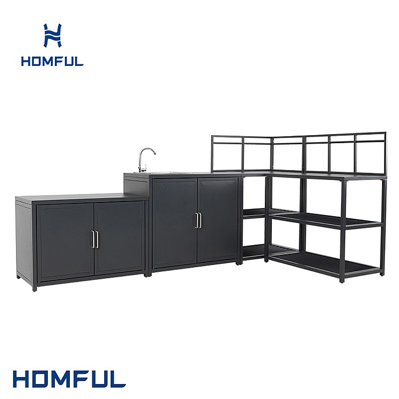유연한 야외 주방 솔루션 구축: 분리형 수납 캐비닛, 싱크 캐비닛 및 두 개의 선반 유닛(80/100cm)으로 구성된 모듈식 디자인으로 고객이 어떤 파티오나 뒷마당 레이아웃도 구성할 수 있습니다. 알루미늄으로 제작된 풀 메탈 야외 주방으로 장기간 야외 사용에 적합하며, 유럽 및 미국 기후와 해안 지역에 이상적입니다. 깊은 캐비닛, 일체형 싱크대, 다단계 오픈 선반이 조리기구, 그릴, 액세서리를 위한 넉넉한 수납 공간을 제공합니다. 브랜드 맞춤형...