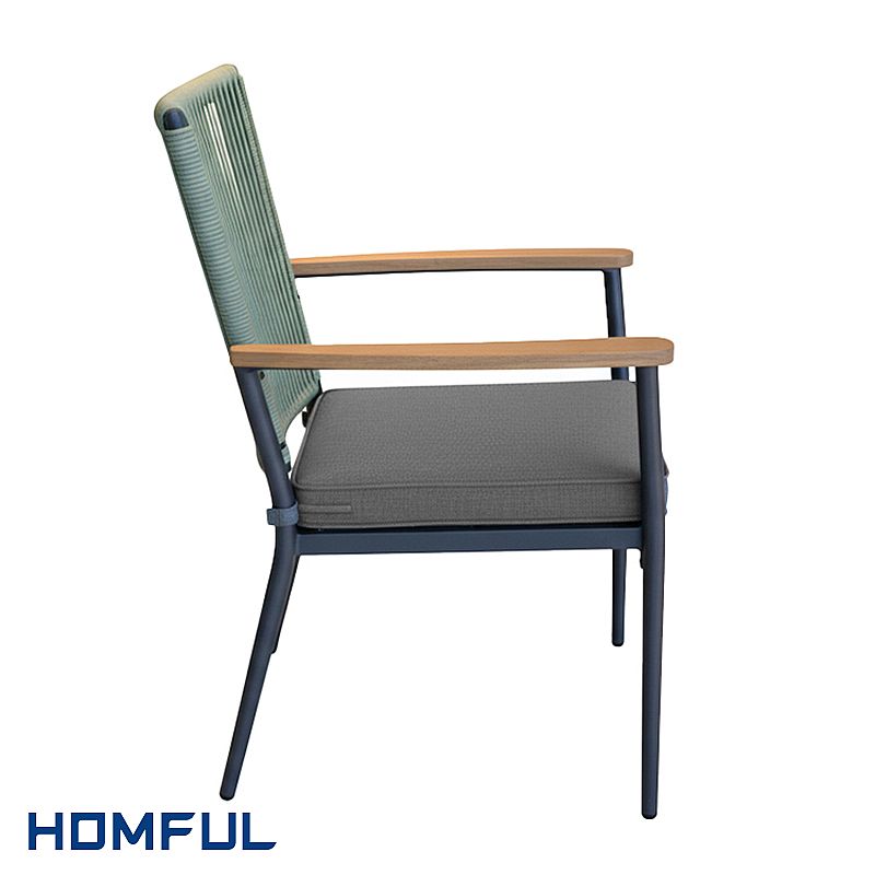 편안함은 좌석에서 가장 중요하게 고려되었습니다. 5cm 두께의 D25 고밀도 폼 쿠션은 일반 슬링 체어에서는 찾아볼 수 없는 탁월한 쿠션감을 제공하여, 레스토랑, 호텔, 옥상 테라스, 카페, 빌라 다이닝 공간 등 손님들이 오래 머무르는 공간에 최적의 편안함을 선사합니다. 나무 질감을 살린 팔걸이 장식은 의자에 따뜻한 느낌을 더해 모던, 해안가 또는 모던한 전원풍 인테리어에 자연스럽게 어우러집니다.