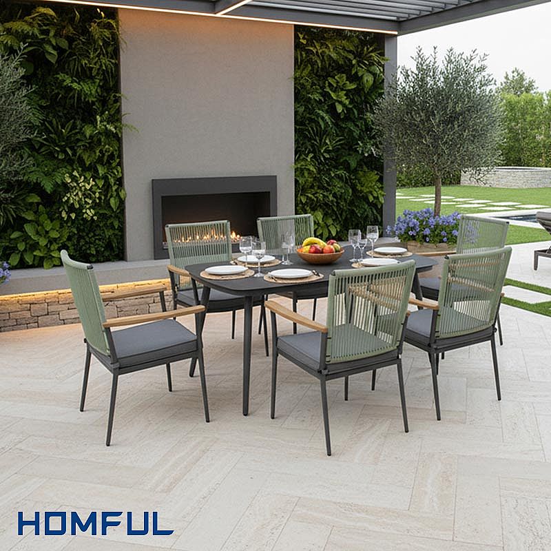 야외 식사는 단순히 "자리가 있는 것"만을 의미하는 것이 아니라, 손님들이 편안하게 머물고, 주문하고, 다시 찾아오는 경험을 제공하는 것이 중요합니다. 모델 11D27G는 깔끔하고 모던한 디자인으로 편안함을 선사하는 야외 식탁용 안락의자로, 레스토랑이나 주거 공간 등 다양한 장소에 잘 어울립니다. 알루미늄 합금 프레임은 안정적인 기반을 제공하면서도 가벼운 무게로 잦은 배치 변경에도 유연하게 대응합니다. 로프 등받이는 통기성이 좋고 질감이 풍부하여 고급스러운 느낌을 주며, 더운 날씨에도 쾌적하게 사용할 수 있습니다. 무겁게 느껴질 수 있는 전체 패브릭 등받이 대신 로프 디자인을 채택하여 공기 순환을 원활하게 하고, 편안하고 휴양지 분위기를 연출합니다.