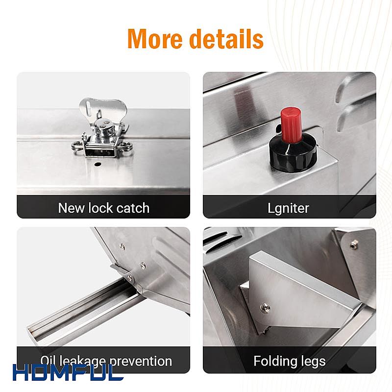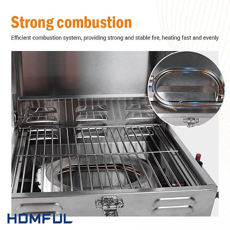 Der Multifunktions-Marine-BBQ-Grill verfügt über ein Thermometer. Es könnte Ihnen die aktuelle Temperatur des BBQ-Grills in Echtzeit anzeigen, was sich hervorragend zum Garen von Speisen eignet, die richtig gegart werden müssen. Manche Speisen schmecken möglicherweise nicht so gut, wenn sie zu lange gegart sind. Es verfügt außerdem über einen Zünder, ist einfach zu bedienen und sicher. Es ist außerdem mit einem Druckminderventil zur Reduzierung des Rohrleitungsdrucks ausgestattet, was zur Erhöhung der Sicherheit beiträgt.