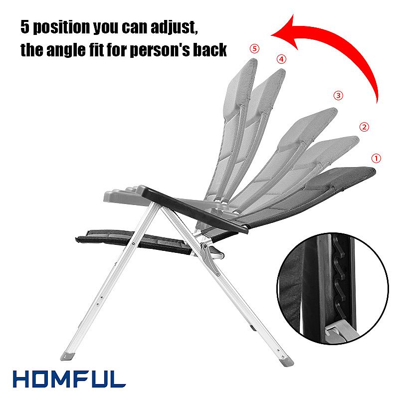 Feathers: This chair has five heights you can adjust, firstly the height you can adjust to 117cm, the back around straight, you can choose this height if you want to adjust your posture, the second height is 110cm just a little different angle than the first, so suitable for same, the third height is 103cm, it is the frequent height to use, it is very comfortable that you can feel softer about the chair, the fourth height is 93cm, it will like a deck chair, you can take a rest in the chair and have a sleep, the final height is 79cm, absolutely it is a deck chair, the back of the chair is parallel with the seat. Many of the customers will use this chair in the office to take a rest and sleep in the afternoon. Also, you can take it outside and use it at your home.