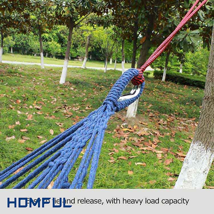 This hammock is made of polyester and cotton, a strong material gives you the most comfortable and relaxing experience ever. easy to hang, comfortable and trendy, this hammock size are200*150 cm, Load weight:150KGS, you can be used for backyard any other outdoor activities. The hammock is soft, breathable and skin-friendly, not only comfortable, strong, durable but also long lasting. It is easy setup, for indoor and outdoor patio use, our hammock can be set up in seconds. The comfy outdoor hammock comes in a tote bag that can be used as a pillowcase when you pack or stuff it with family, children, pets and friends, The dreamlike rainbow-colored travel hammock is made of sturdy fabrics and is friendly to the environment, It is good for your children and your pets. Swing your light bed hammock on nature or the beach and enjoy a super relaxation time, cocoon shaped rope hammock to give you a restful sleep and help you with your back pain.