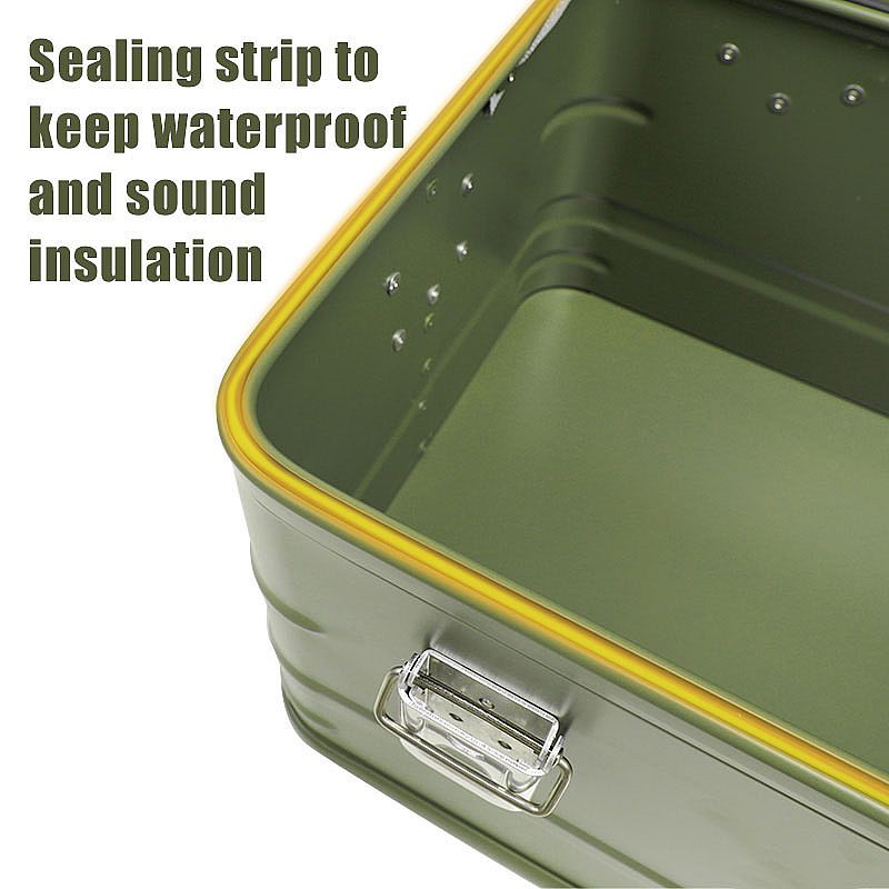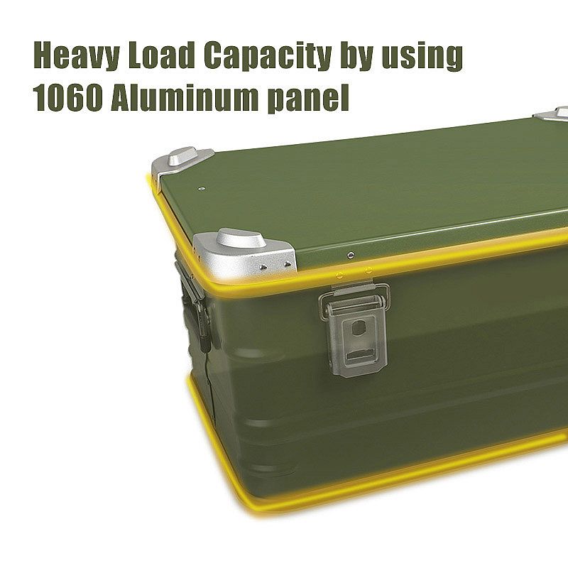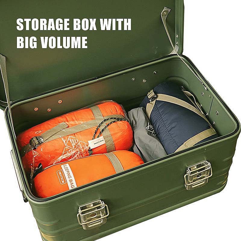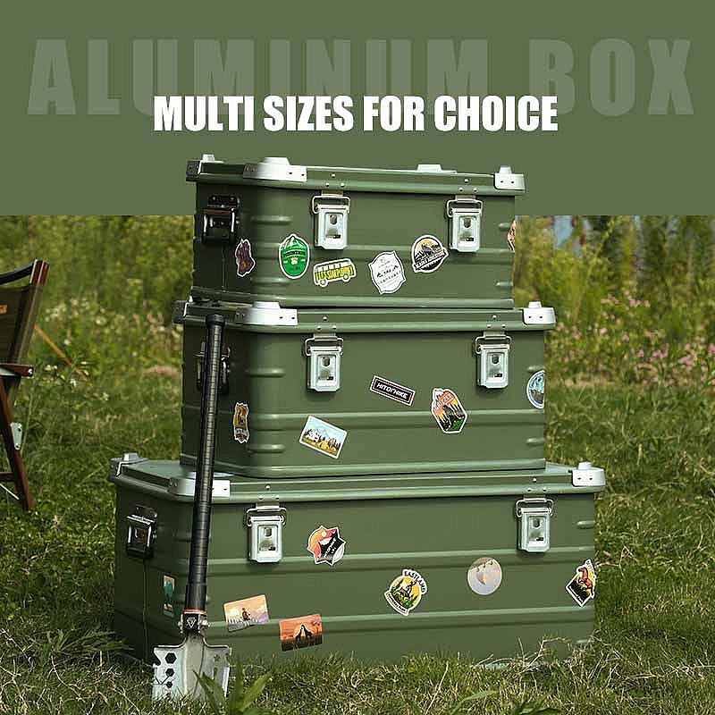 It's made of aluminum alloy, so it's lighter, and it doesn't rust. The camping box surface is sprayed with plastic and can be made into any color you want. The interior space is large and can put a lot of things. Like alcohol, drinks, and toys. And there are many sizes to choose from to meet the needs of different groups of people. It has 3 sizes: 29L, 45L and 90L. What's more, the camping storage box can be used as a small table, so you can buy a product to meet the two functions of the table and storage, which is perfect. You can put them in your trunk, they're easy to carry around, and they don't clutter up your space.