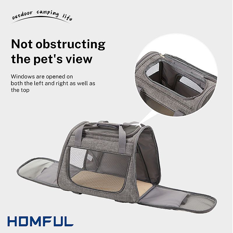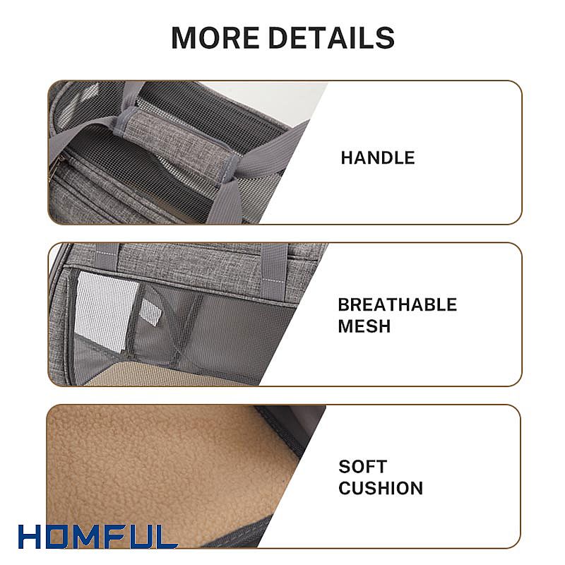 This pet taxi adopts a detachable pet bag design, which can be opened from three sides, making it easy for pets to get in and out, and also convenient for owners to quickly take out their pets when needed. It greatly improves the convenience of use and cleaning. The breathable net design of this pet cart ensures that pets can get good ventilation in the car, providing a comfortable environment, suitable for long-distance travel. At the same time, the soft cushion inside the cart provides extra comfort for pets, allowing them to rest at ease during the journey. It is very suitable for owners who like to travel with their pets.