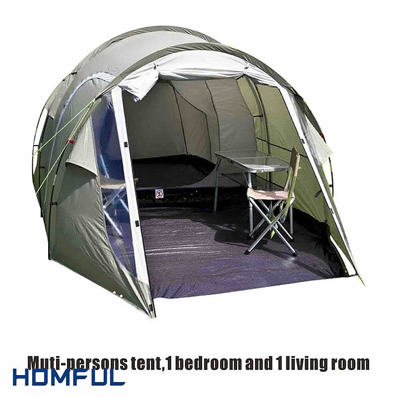 The tunnel camping tent is very small, the whole tent is very compact, but when assembled, the interior is very large. It's a great choice for camping trips. Tents are very easy to set up, and even for a novice, are very easy to operate. All of our fiberglass rings benefit from dual quality control guaranteeing one of the best fracture resistance. Tent nail: excellent torsion resistance.