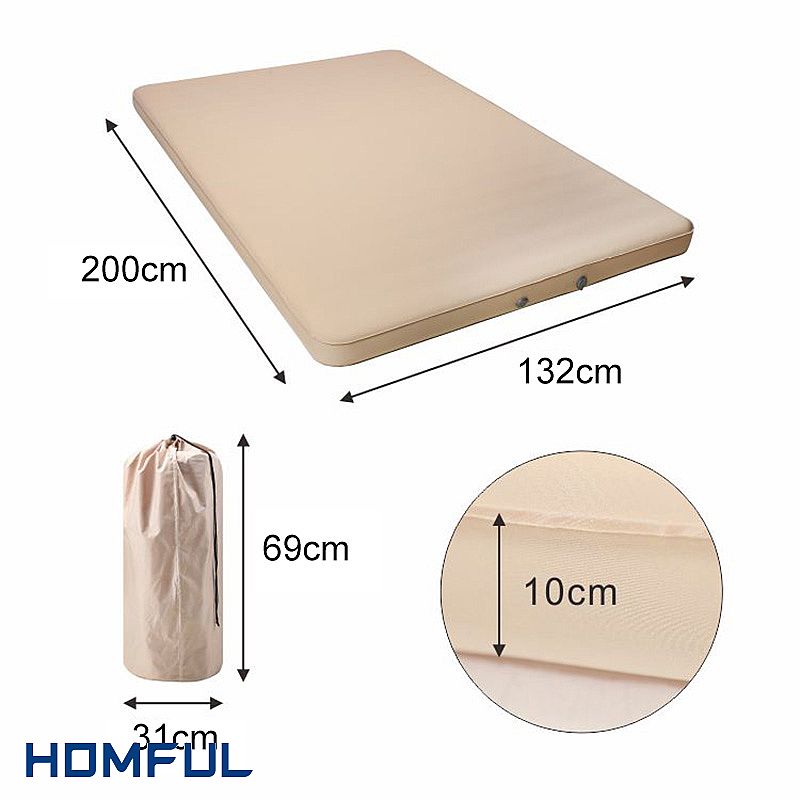 Información detallada: el tamaño de esta almohadilla es de 200x132x10 cm, la longitud es de 200 cm, el ancho es de 132 cm y el grosor es de 10 cm, el alto grosor hace que la persona se sienta tan suave cuando se acuesta en la almohadilla, también el alto grosor puede usar la almohadilla en cada ambiente dificil. Como este tamaño de almohadilla es adecuado para dos personas, también tenemos un tamaño pequeño adecuado para una persona, si necesita más información, contáctenos. El peso de la almohadilla es de 5,3 kg, es muy liviano, puede llevarlo a todas partes, es muy portátil y fácil de transportar.