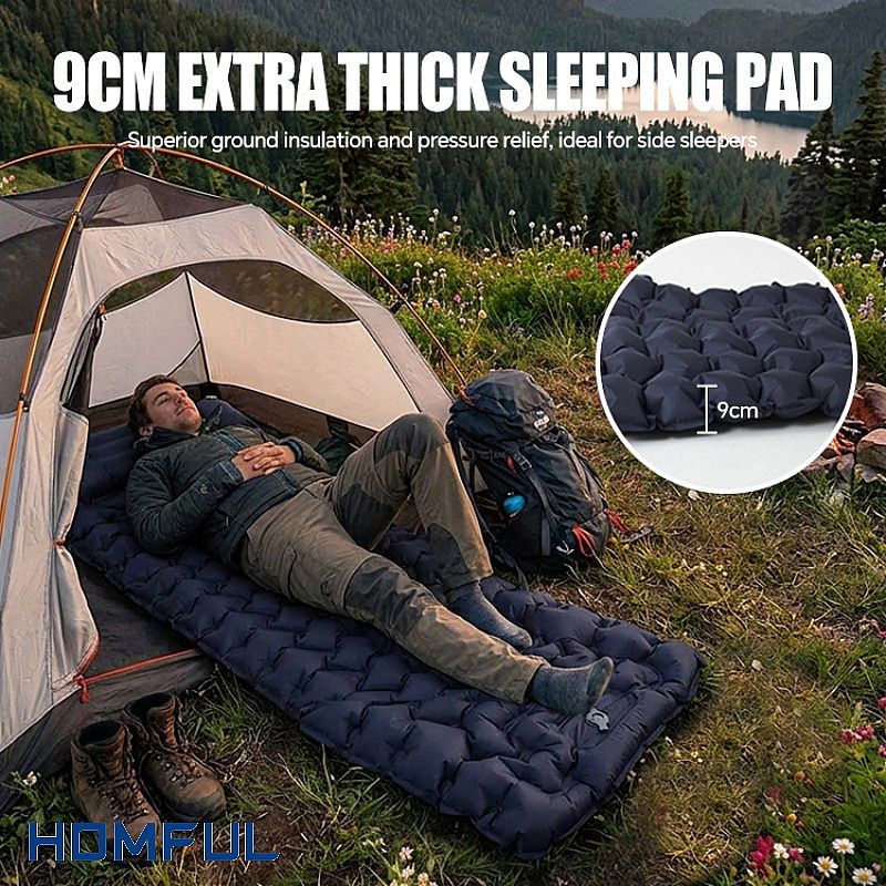 La colchoneta inflable de doble capa modelo 60W26Z para mayoristas está diseñada para quienes buscan un sueño reparador al aire libre, no solo una barrera entre ellos y el suelo. La colchoneta utiliza una estructura de aire de doble capa y alcanza un grosor de 9 cm, lo que mejora el aislamiento del suelo y ayuda a aliviar los puntos de presión, para que los usuarios se despierten con menos rigidez después de acampar en terrenos rocosos o en suelos duros de tiendas de campaña. Con un generoso ancho de 72 cm y un largo de 200 cm, se adapta a una mayor variedad de tipos de cuerpo y posturas para dormir, lo que facilita que los distribuidores la presenten como una mejora respecto a las colchonetas estrechas y delgadas. Se pueden conectar dos colchonetas mediante dos botones a presión para formar una cama doble, ideal para parejas, glamping o para la vida en furgoneta.