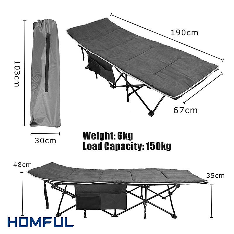 Comfortable And Perfectly Portable: The cotton pad is filled with polyester wadding which is warm and fluffy. It has high adaptability after contraction. This camping bed's small size makes it easy to store and bring it anywhere. The estimated weight of this cot is 6kg and can unfold into the folding size: 190x67x35/48cm. Based on it, this is convenient when you take it.