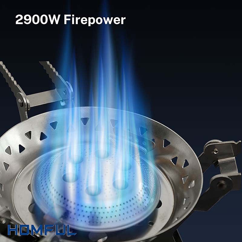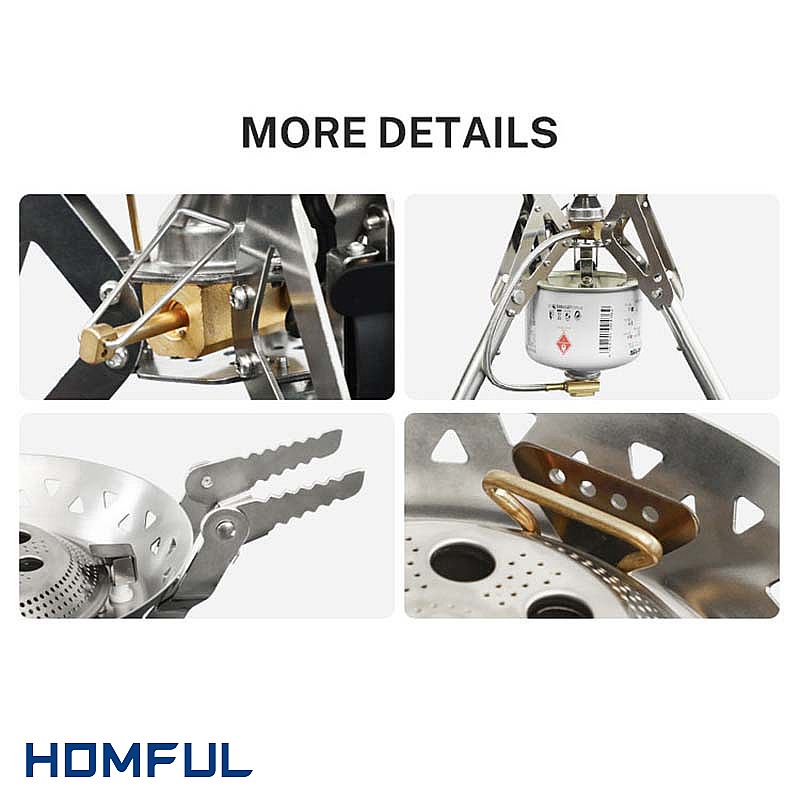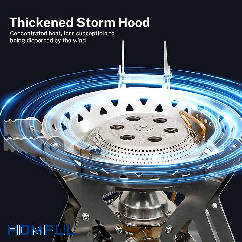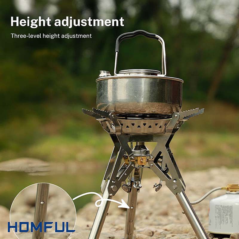 Esta estufa de gas está hecha de acero inoxidable 304, con un tamaño plegable de 25*32 cm, súper resistente al viento y diseño antillama, que son buenas características que atraen a más clientes de camping. Además, con ajuste de altura, tiene un ajuste de altura de tres niveles, una capota contra tormentas engrosada, calor concentrado y es menos susceptible a ser dispersado por el viento.