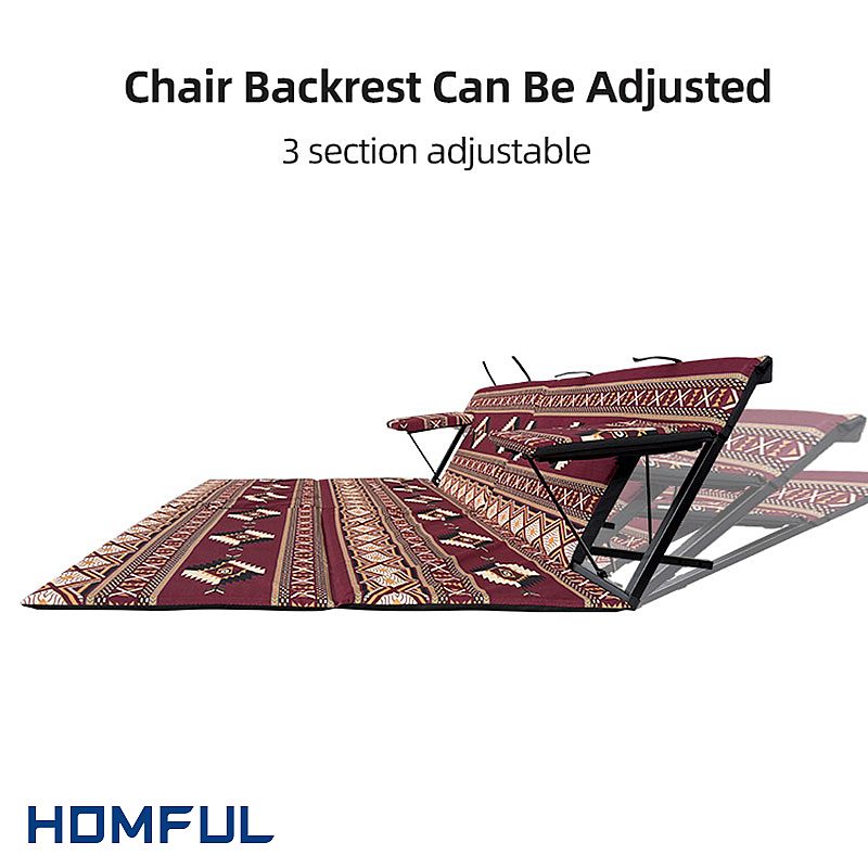Some products sell because they are practical. Others sell because they are memorable. This portable Sadu-style floor folding chair does both. It combines a compact foldable structure with a widened floor seating surface, adjustable backrest, and strong decorative appeal, making it a product that feels more complete than a standard camping seat. The result is a chair-mat hybrid that suits outdoor relaxation, cultural lifestyle settings, and prayer or floor-seating use with equal ease.