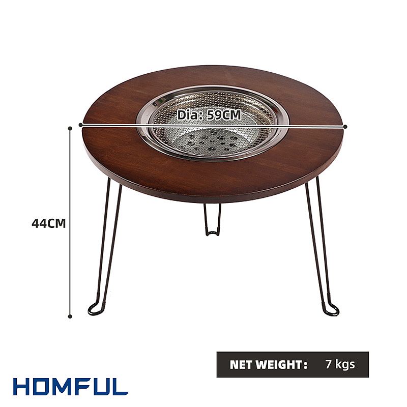 The table can be divided into two parts; one is the main table body, and the other is the stove. This compact and lightweight size makes it easier for you to carry around. The weight is 7 kg. The expanded dimensions are 59x59x44cm. Besides, the four legs can be folded to measure 59x59x15cm.