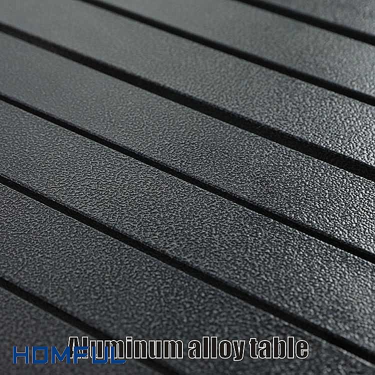 Detail: The legs of this table are connected by screws between each aluminum rod and the aluminum rod, which is very strong and supportive. Each table leg is made of a non-slip plastic foot cover; to prevent the table from sliding, make the table more firm and stable when using. For the tabletop, you can choose black, silver, and wooden colors, but the different colors have different prices; black works best and looks very nice.
