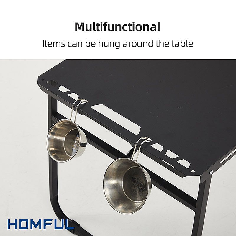 La mesa móvil para acampar multifuncional es móvil y se puede empalmar; el orificio en la mesa se puede personalizar; gracias a estos espacios cóncavos, se puede usar para colgar algunos rudimentos, y también se puede empaquetar en un área realmente...