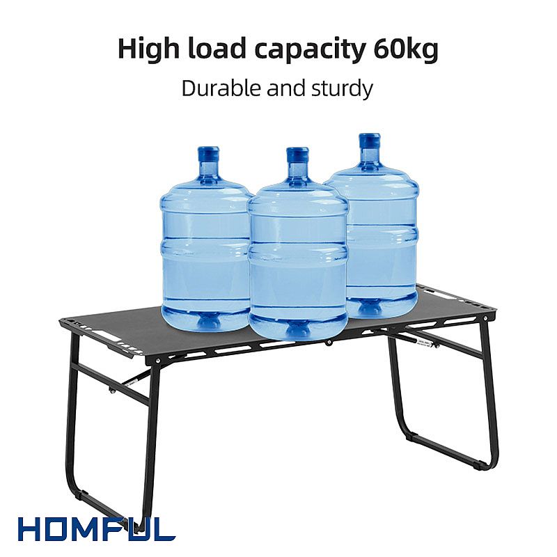 Fabricada con acero resistente y uniones reforzadas, esta mesa soporta hasta 60 kg de peso con facilidad. Esto significa que es lo suficientemente resistente para grandes bidones de agua, cocinas de camping completas o prácticamente cualquier cosa que tus clientes puedan tirarle.