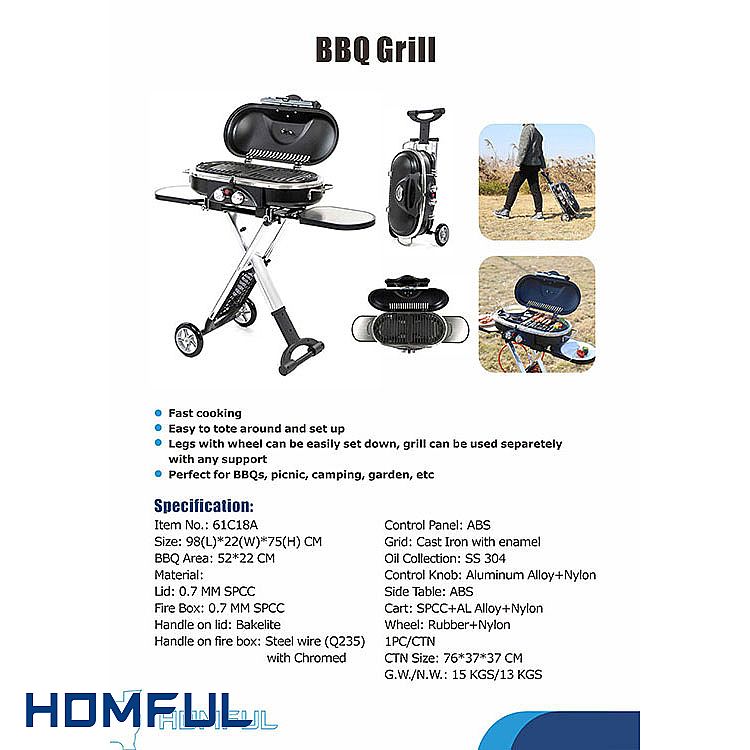 On this page, thank you for choosing to open to see our hot-selling BBQ Grill, Maybe when you first saw it, you will like me very much. Because it’s a good-looking trolley bbq grill, but also portable, compact, smoke-free, environmental protection, energy-saving, time-saving, and labor-saving. The whole body food grade 304 stainless steel, high-grade aluminum alloy strong bracket, easy-to-clean environmental protection grill. And the Interfaces are provided according to the requirements of different countries. Having regular color options like black, blue, red, or another customized color, And three-second ignition of the gas system in the outdoor barbecue grill, can let it accompany you through countless ups and downs, The gas tank connected to me is also safety explosion-proof gas tank imported from South Korea, you can choose to remove the jar from my body and connect it with the national standard gas tank. I believe that I can bring you the safest, best used most durable, and high-end fashion experience. We believe that these features will appeal to many users and get good reception in your market. connect us for OEM, ODM.