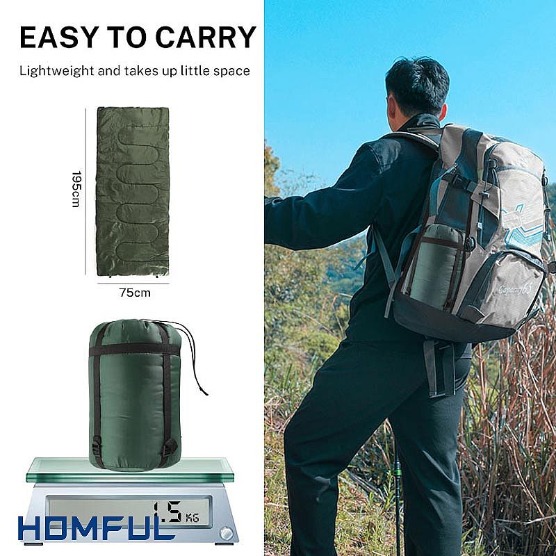Accesorios: le proporcionaremos una bolsa de almacenamiento de forma gratuita; puede comprimir y empacar fácilmente el saco de dormir en la bolsa de almacenamiento. El saco de dormir de almacenamiento es fácil de transportar; Puedes ponerlo en una mochila o colgarlo en tu cuerpo. Sáquelo de la bolsa de almacenamiento cuando necesite usarlo.