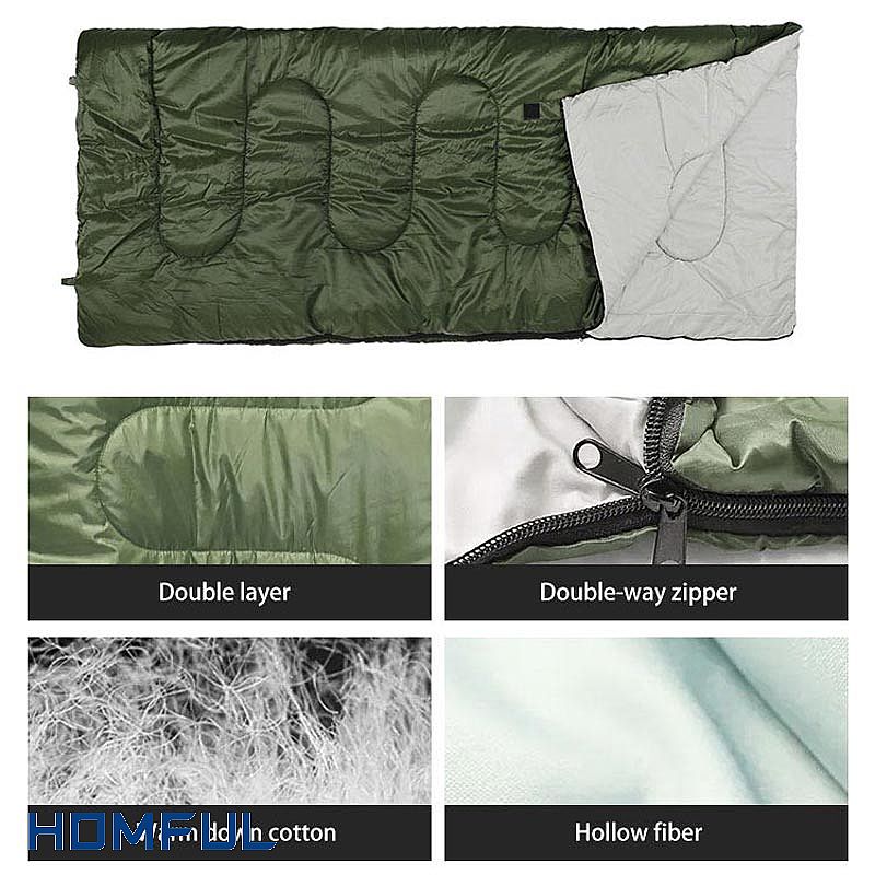 Detalles: el saco de dormir rectangular puede brindarle más libertad de movimiento, y también tenemos un diseño especial de cremallera para garantizar que pueda desabrocharse los pies cuando sienta calor para que sus pies puedan estar relajados. Si quieres mantenerte abrigado, tenemos una tira de tormenta y un escote para mantenerte abrigado. Si siente demasiado calor en verano, abra la cremallera del saco de dormir y conviértalo en una taza para cubrir su cuerpo. Nuestro material asegura la resistencia al agua y al desgarro, garantizando que no se mojará y podrá usarlo más cuando lo use al aire libre.