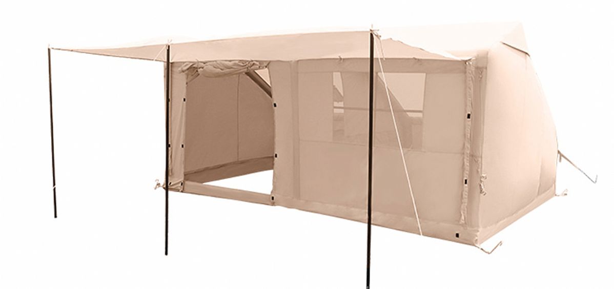 Las carpas inflables están hechas de tela de poliéster y algodón. Este material se caracteriza por su transpirabilidad y resistencia al agua. Sobre esta base, también hicimos un tratamiento de protección solar, para que la tela pueda alcanzar UPF50+. Además, también agregamos un diseño de dosel en la entrada, que también puede desempeñar un papel en la prevención de la entrada de rayos ultravioleta. Se puede acceder a una gran cantidad de UV con una simple acción de abrir la puerta.