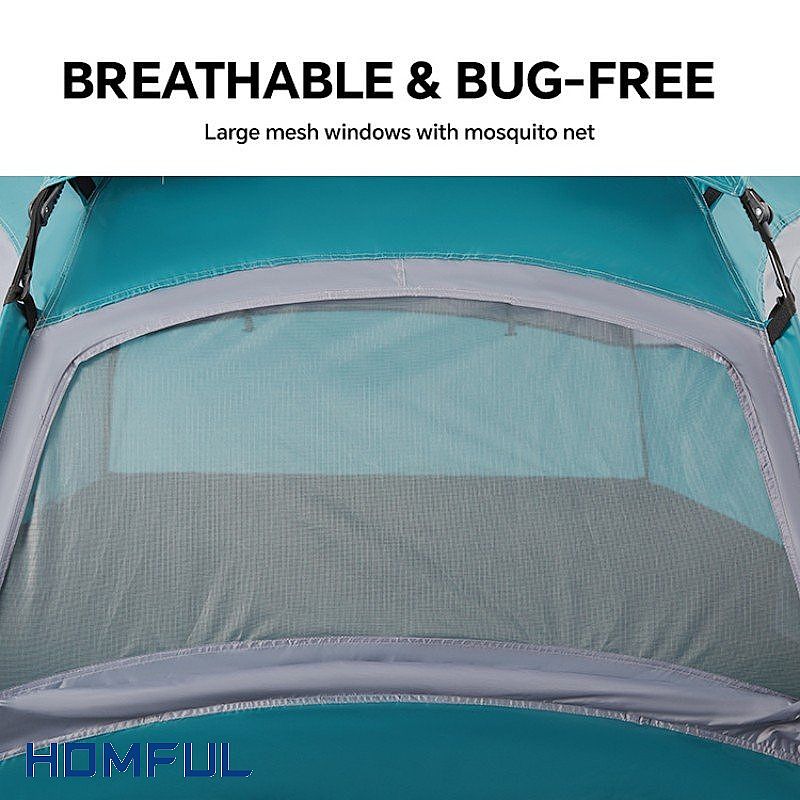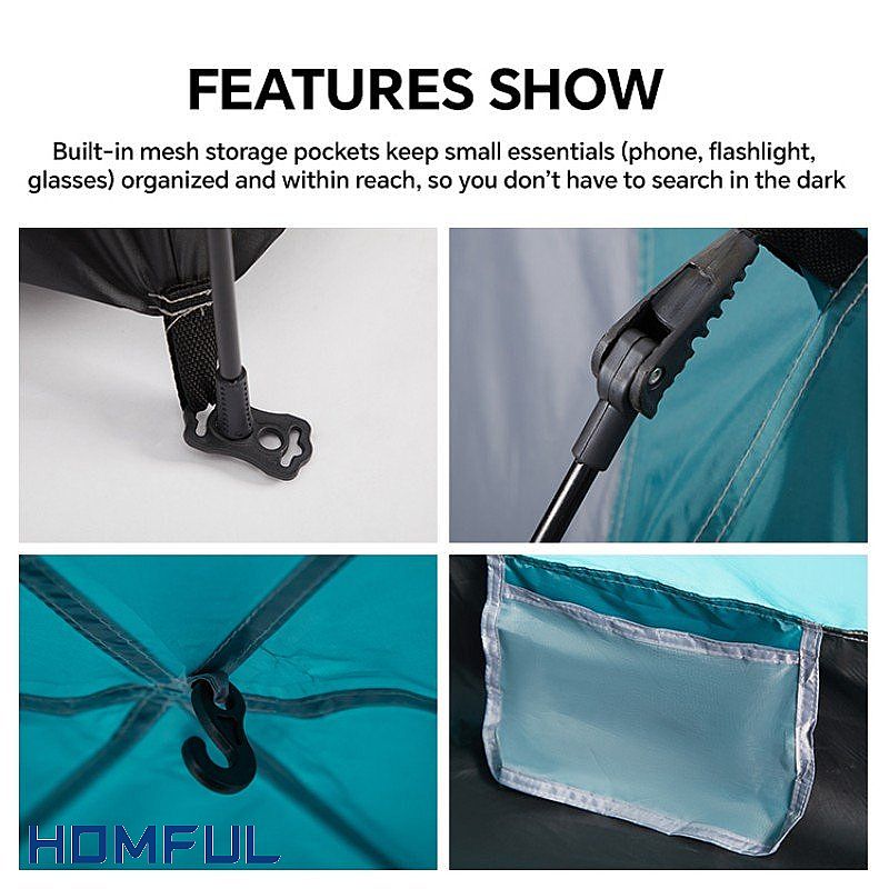 El montaje también es muy sencillo, sin necesidad de conocimientos técnicos. Incluso los principiantes pueden montarla completamente en solo 3 minutos, lo que te ahorra tiempo y esfuerzo. Ya sea para acampadas, picnics o reuniones al aire libre, esta tienda combina a la perfección espacio, transpirabilidad y comodidad.