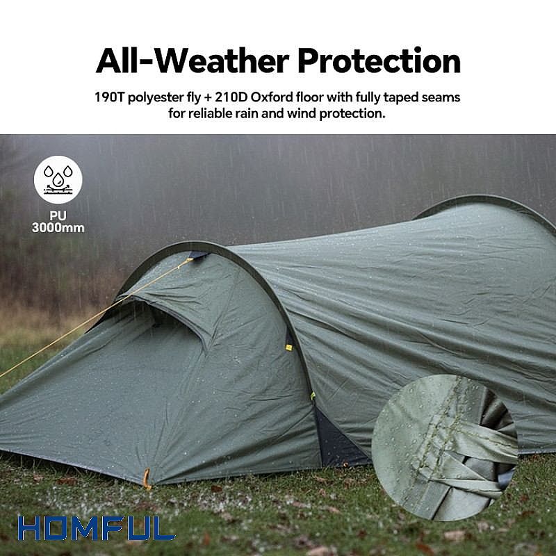 La tienda de campaña tipo túnel para dos personas 60I23W, resistente al viento, está diseñada para quienes acampan en condiciones reales, no solo en fines de semana soleados. Su perfil de túnel repele el viento de forma natural, y la estructura de refuerzo diagonal y los postes de tubo de aluminio ayudan a que la tienda mantenga su forma incluso con ráfagas de viento. Su construcción de doble capa combina un tejido de poliéster recubierto de PU con un interior transpirable, creando un equilibrio práctico: protección exterior y comodidad interior. Con una barrera contra la lluvia de 2000-3000 mm y costuras diseñadas para clima húmedo, esta tienda se posiciona como una opción confiable para la distribución en varias temporadas.