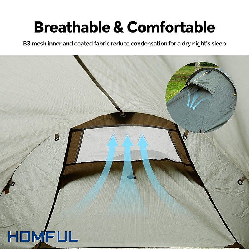 Lo más destacado para los usuarios finales (y un tema recurrente entre los distribuidores) es el amplio vestíbulo frontal. Aquí es donde los clientes notan la mejora al instante: el equipo se guarda en la parte delantera, el barro se mantiene alejado del espacio para dormir y el campamento se ve organizado en lugar de caótico. Añada la ventilación de malla B3 y obtendrá un ambiente de descanso más seco, especialmente útil en bosques húmedos, campamentos junto a lagos o temporadas medias de lluvia.