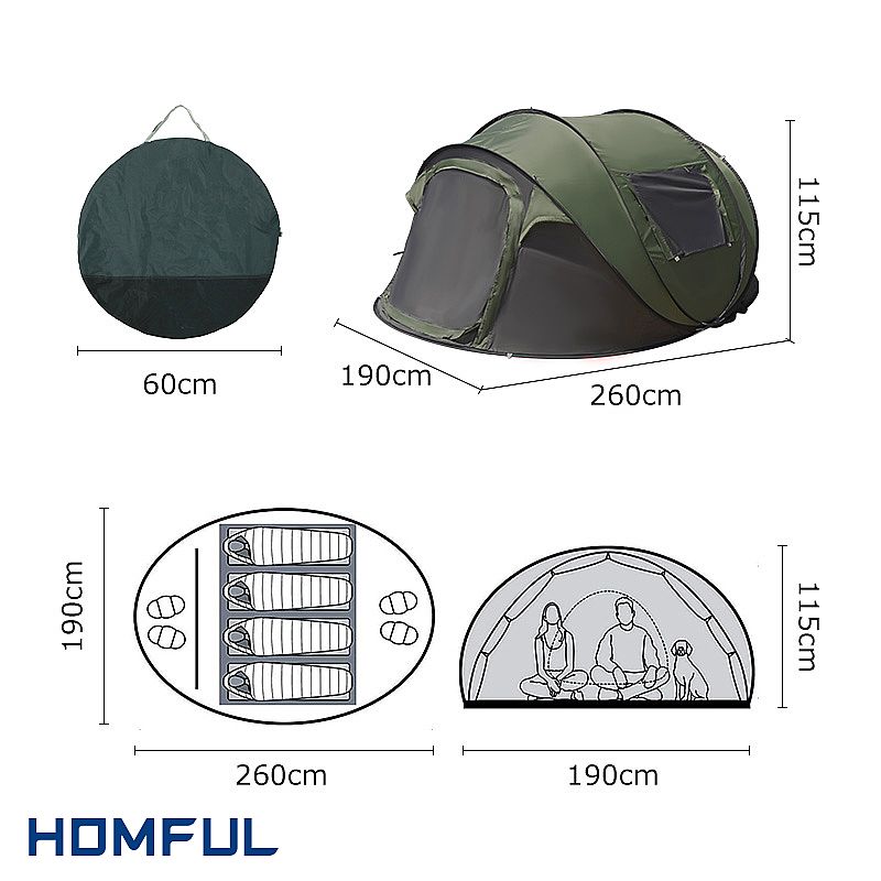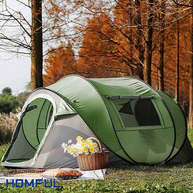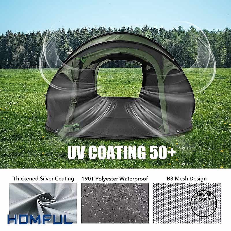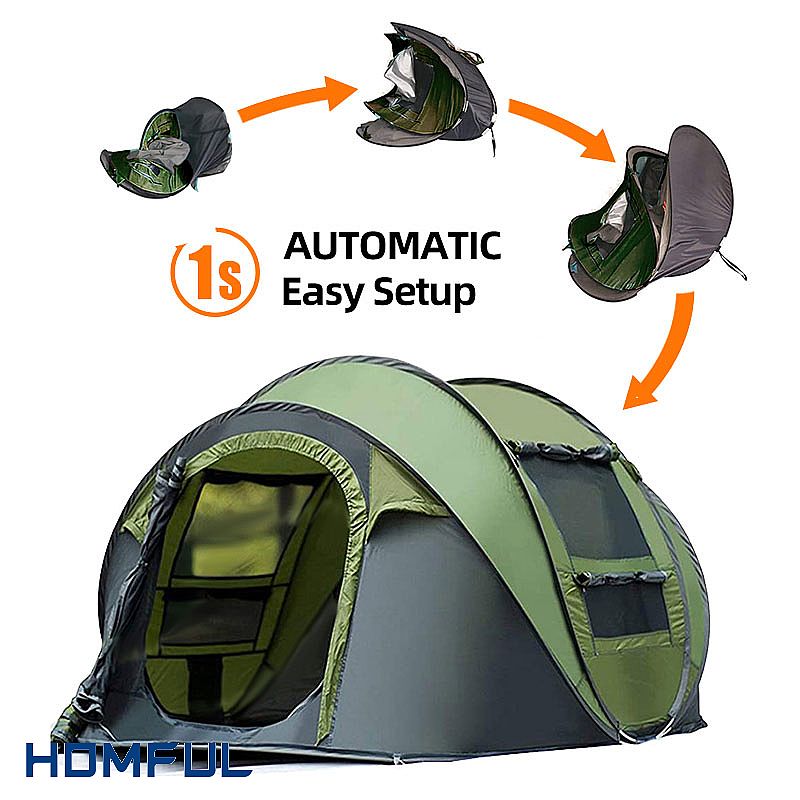Las carpas desplegables son la opción perfecta para acampar cómodamente. Cualquiera puede tener problemas para construir. Abre el paquete y la tienda se abrirá tan pronto como la tires. Puedes montar una cómoda tienda de campaña en la naturaleza en un segundo.