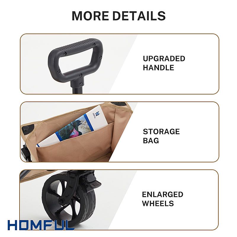 Este innovador carro de camping cuenta con una puerta trasera y ruedas desmontables. El diseño de puerta trasera del carro de camping aumenta significativamente el volumen interno disponible, lo que le permite transportar más artículos. El diseño de ruedas desmontables ahorra espacio de almacenamiento y es más fácil de transportar. Estos diseños mejoran la practicidad y portabilidad de este carro de camping, haciéndolo adecuado para una gran variedad de escenarios. Si está interesado, póngase en contacto con nosotros para obtener más información OEM/ODM.