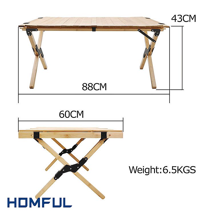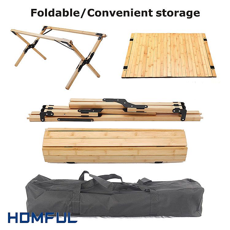 Pack: All our wood tables can be folded; after using, we can roll or fold them into a small size, then into a portable carry bag with a handle and zipper. The small package will be easier for our camping and outdoor. And the small package size will make low shipping cost for both suppliers and clients.