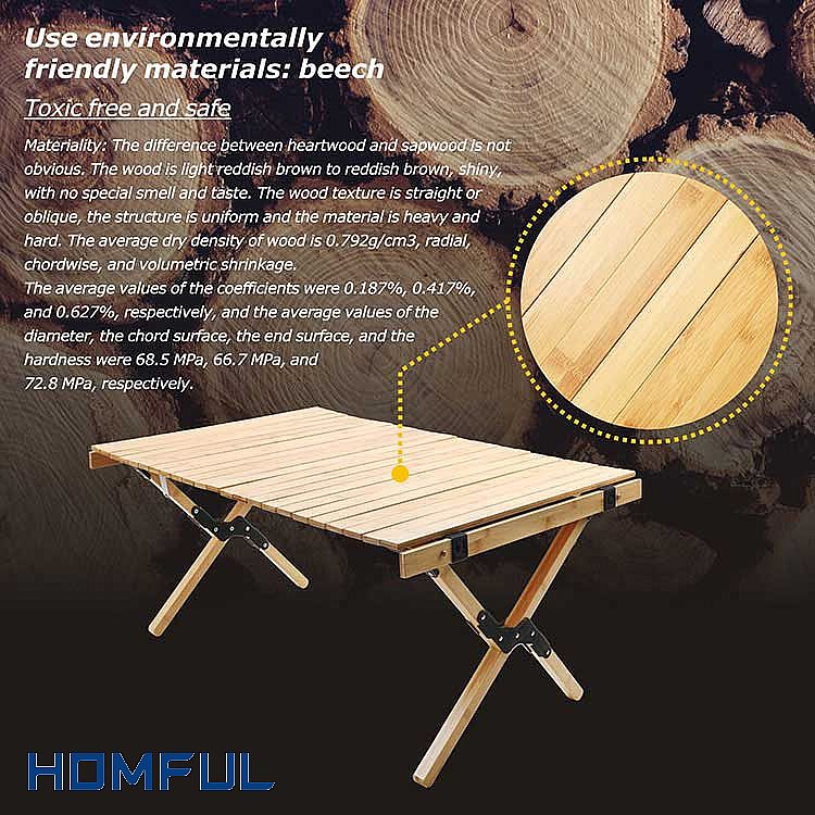 Usage: Wood camping tables are mainly used for camping and outdoor. We can put our camping cookware and our foods and drinks on the table, put our snacks on the table and have a nice sunny afternoon, and sit around the table and eat by the table. Based on the multi-function usage, more and more buyers use them indoors, just like our tea table and dining table.