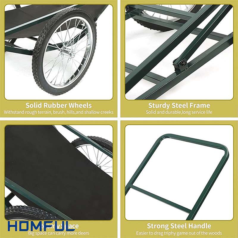 A steel hunting deer game cart is a must-have for hunters. Its high-grade steel build offers unmatched durability, resisting corrosion and damage from rough terrain. With heavy-duty performance, it easily supports large game without wobbling. The sturdy structure ensures stability on all surfaces, thanks to wide axles and puncture-proof tires. It's also user-friendly, featuring simple assembly, foldable designs, and adjustable handles. Plus, it's versatile enough to transport gear beyond hunting. In essence, this cart saves time and energy, making your hunting trips more efficient and enjoyable.