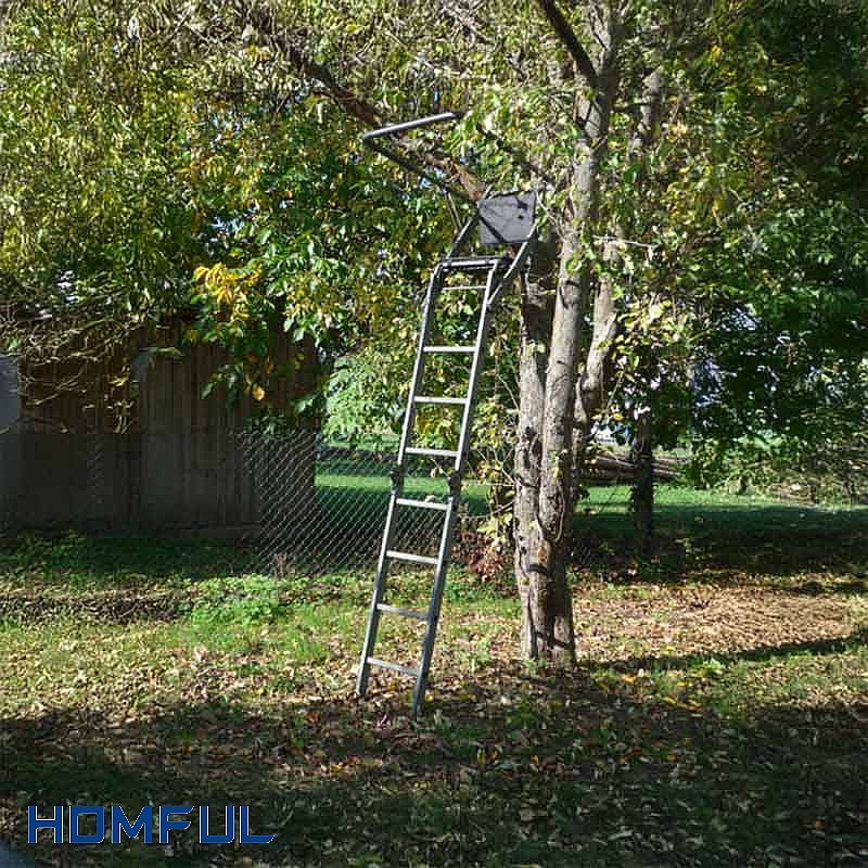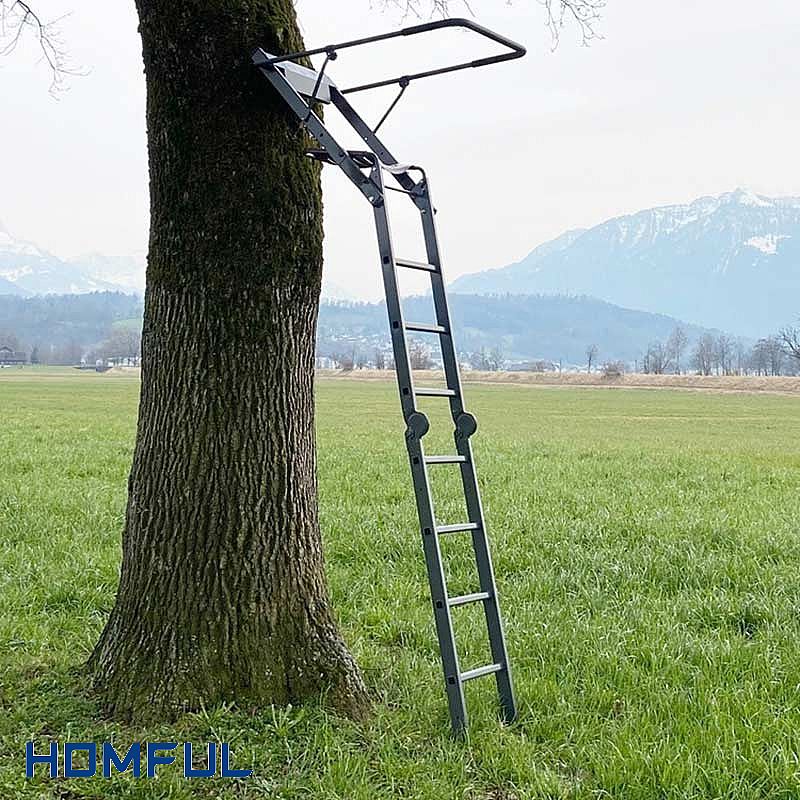 Der Aufbau dieses Hochsitzes ist kinderleicht. Ziehen Sie den Hochsitz einfach auf die gewünschte Höhe aus, positionieren Sie ihn am Baum und befestigen Sie ihn mit den mitgelieferten Gurten. Der Hochsitz eignet sich für verschiedene Baumarten, von dünnen Setzlingen bis hin zu dicken Harthölzern. Dank seiner Vielseitigkeit und seines praktischen Designs ist unser Jagdhochsitz die ideale Wahl für Jäger, die ständig unterwegs sind.