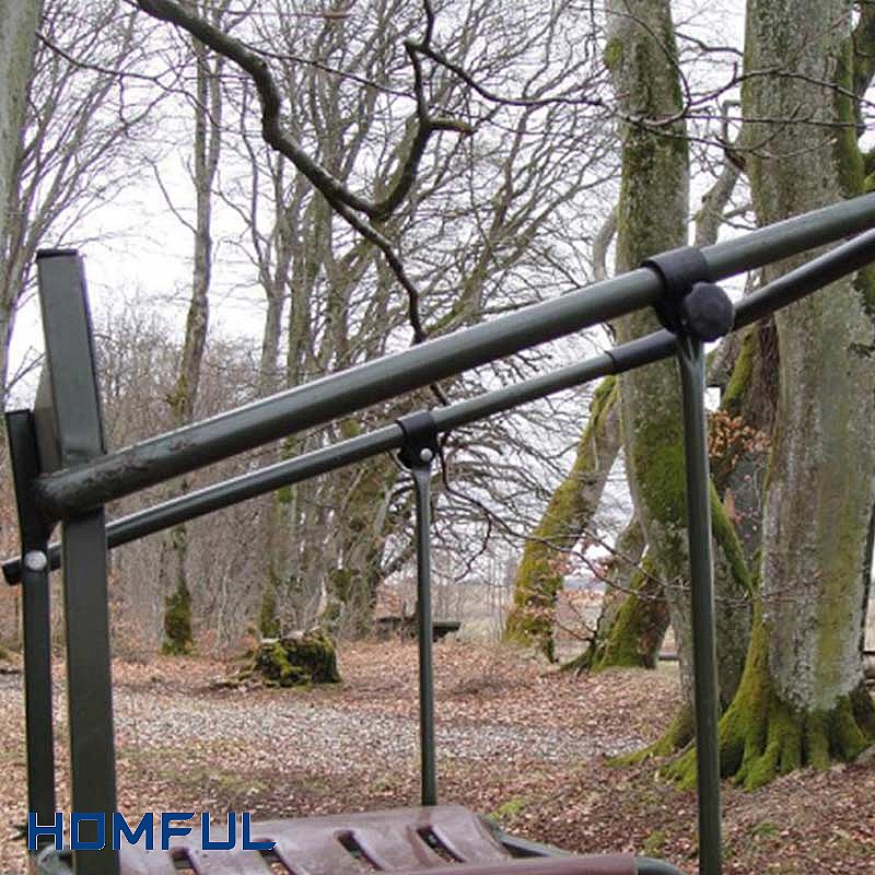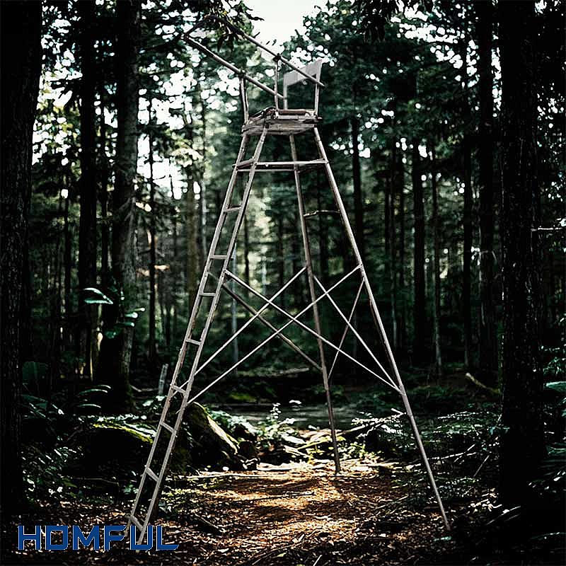 Der Aufbau dieses Hochsitzes ist kinderleicht. Ziehen Sie den Hochsitz einfach auf die gewünschte Höhe aus, positionieren Sie ihn am Baum und befestigen Sie ihn mit den mitgelieferten Gurten. Der Hochsitz eignet sich für verschiedene Baumarten, von dünnen Setzlingen bis hin zu dicken Harthölzern. Dank seiner Vielseitigkeit und seines praktischen Designs ist unser Jagdhochsitz die ideale Wahl für Jäger, die ständig unterwegs sind.