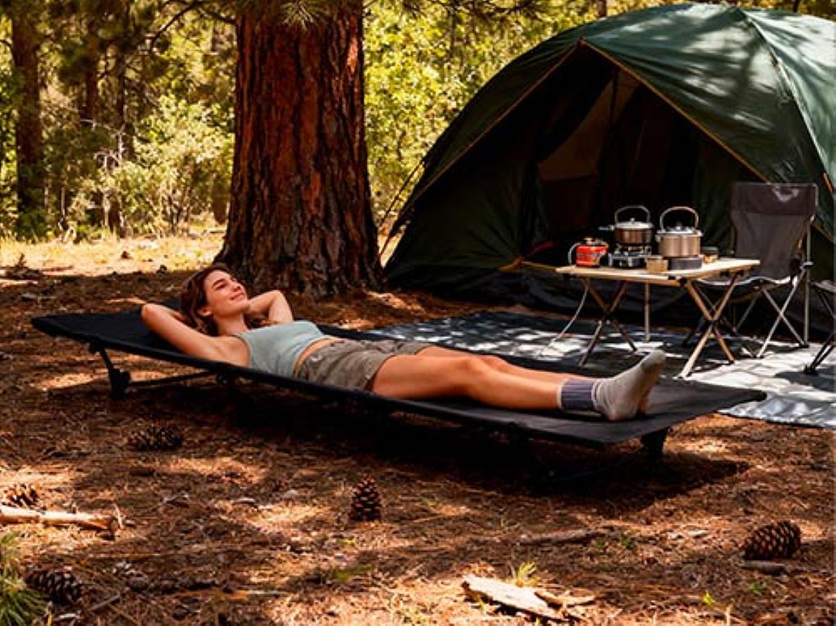 Das ist besonders praktisch, wenn man spät abends oder bei schlechtem Wetter aufbaut. Niemand möchte im Dunkeln mit Stangen hantieren.Manche Klappbetten bieten Liegepositionen, sodass man sie tagsüber als Liegestühle nutzen kann. Diese werden als verstellbare Campingbetten bezeichnet. Sie sind ideal, wenn man ein Ausrüstungsteil sucht, das sowohl zum Schlafen als auch zum Entspannen geeignet ist.