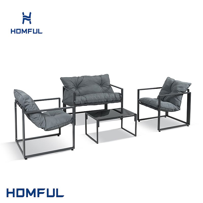 Multipurpose: appropriate for use in gardens, courtyards, and other outdoor spaces. It is long-lasting, has great weather resistance, is built of cast iron and aluminum, and may be used for many years. Because it is lightweight and essentially does not rust, aluminum is the perfect material. Aluminum Flat noodles are also used to make the seats. It has a two-person couch and two single armchairs, which can accommodate up to four people and fulfill various family members' demands. High-quality fabric covers the chair's surface, making it pleasant and long-lasting, resistant to filth and bacteria, and preventing color changes in the furniture caused by moisture. Its straightforward and elegant form makes it perfect for a variety of outdoor areas, enhancing the beauty and size of your outdoor area.