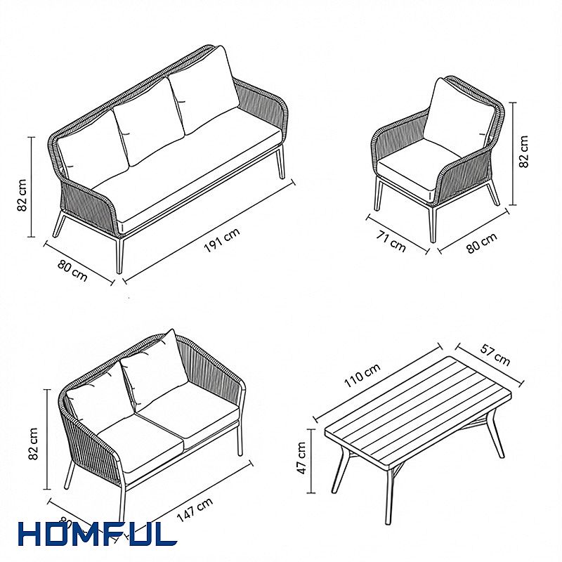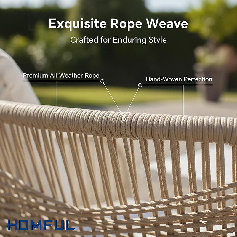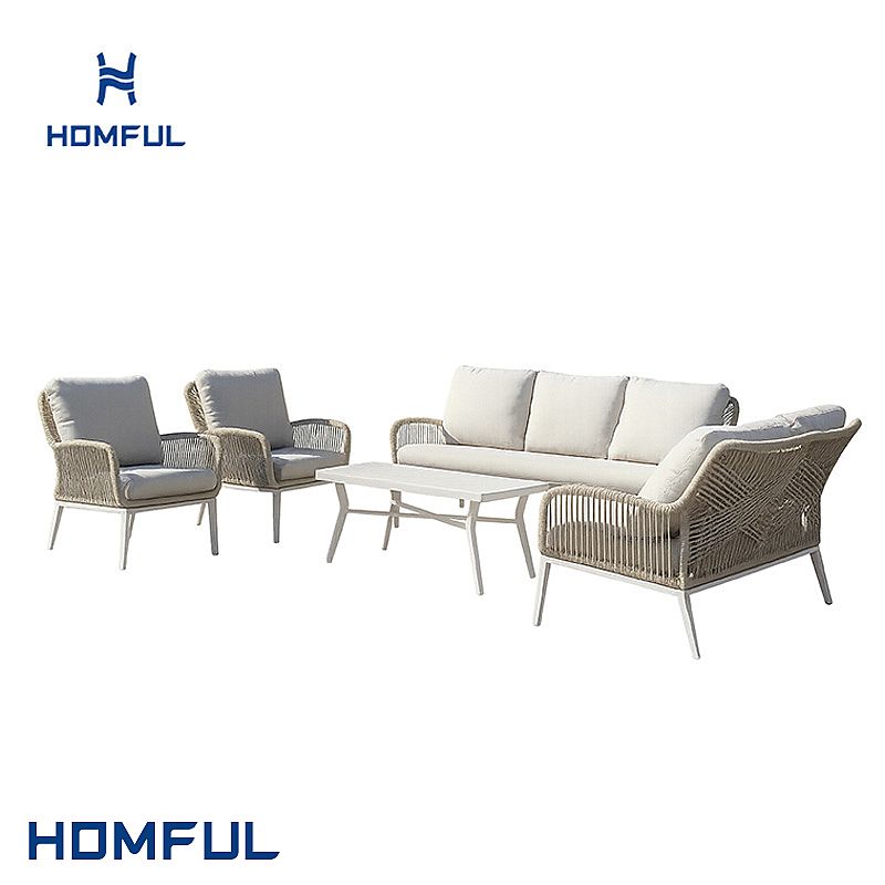 The All-Weather Rope Woven Sofa Set with Outdoor Aluminum Frame Coffee Table is designed to bring resort-style comfort and refined coastal aesthetics to any outdoor project. Built on a fully welded aluminum frame, each piece is lightweight yet structurally strong, ensuring excellent corrosion resistance even in humid, seaside or poolside environments. The frame is finished with a durable outdoor coating that helps prevent scratching, chipping and color fading over time.