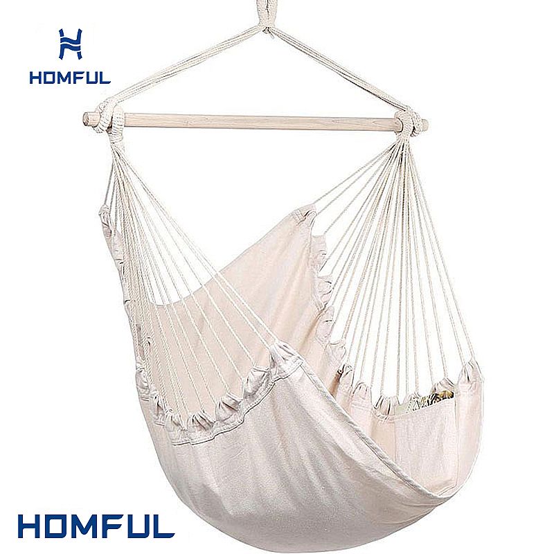 La mayor diferencia de la silla hamaca con respecto a otras sillas hamaca es el gran espacio adecuado para todos los miembros de la familia. Un columpio de hamaca grande es suficiente para brindarle más comodidad. Podrás tumbarte y disfrutar de una relajación total. Silla hamaca grande equipada con dos almohadas extragrandes en lugar de una para mejorar la comodidad y el apoyo de la espalda. Esta cómoda silla hamaca es un muy buen lugar de descanso para los niños o para usted.