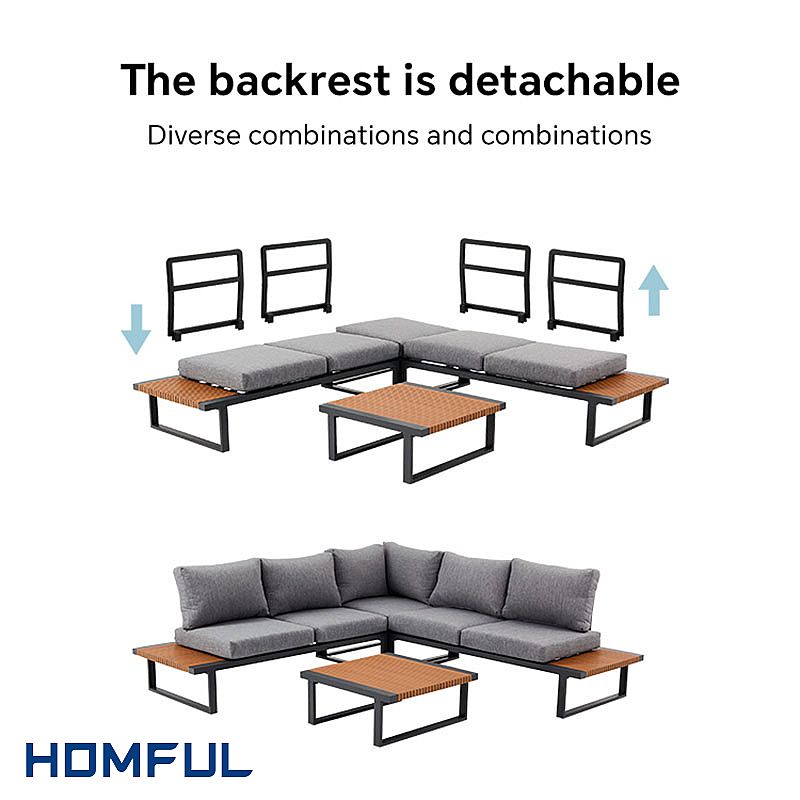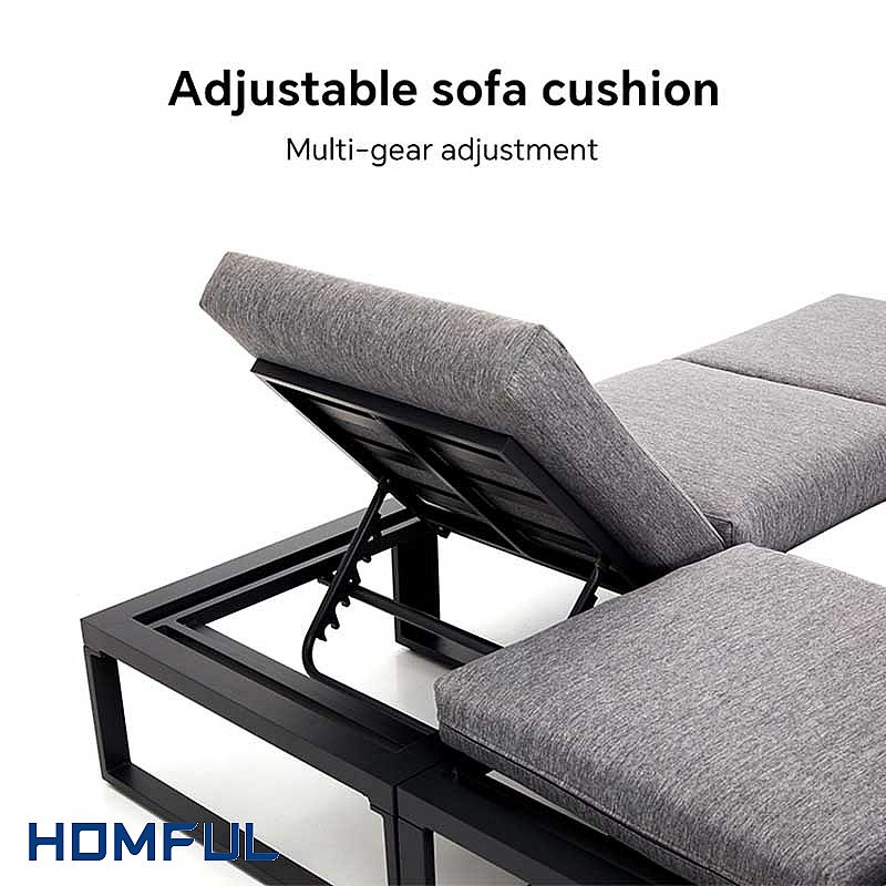 Este sofá metálico para jardín es excepcionalmente cómodo, con tela de alto rendimiento para exteriores, cojines de asiento y respaldo generosamente reforzados y fundas de asiento extraíbles para facilitar su lavado. El diseño inteligentemente adaptable de los asientos permite a los usuarios reclinarse en varios ángulos, convirtiendo una parte del sofá en una cómoda tumbona. El respaldo desmontable permite una reconfiguración rápida y sencilla, o puede convertirse en una cama plana, ideal para resorts o piscinas.