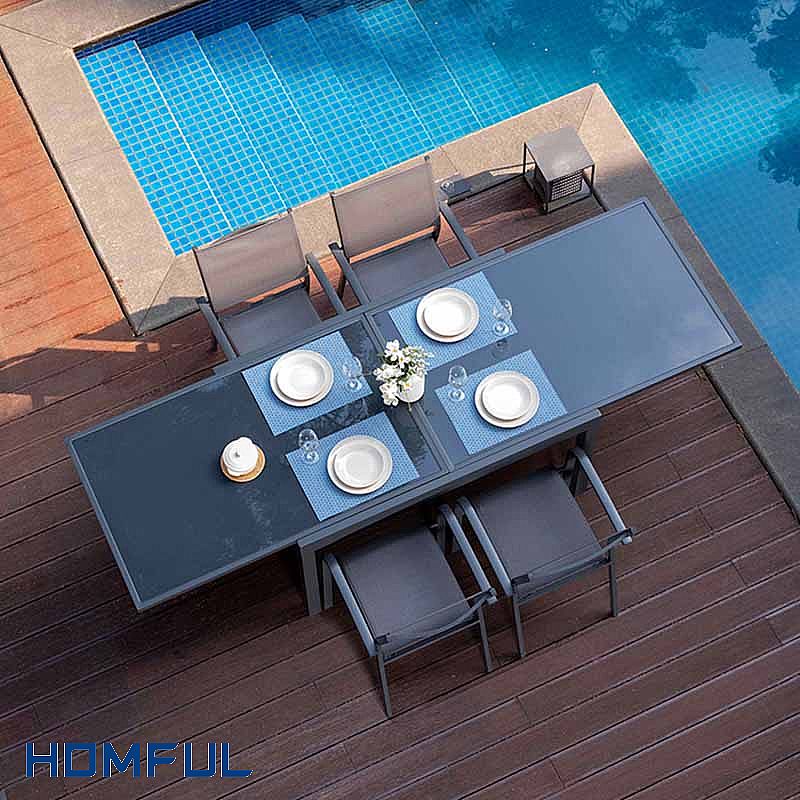 Our dining table sets are designed to be simple and stylish, making them suitable for various outdoor settings. The aluminum material makes it lightweight and easy to carry and place. In addition, aluminum has excellent weather resistance, does not rust or corrode, and can withstand various weather conditions.