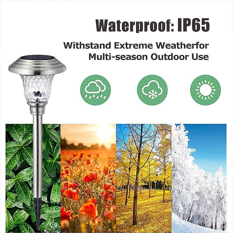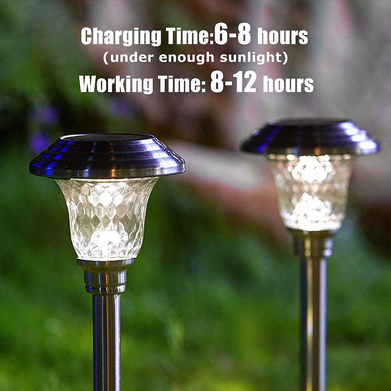 Das Hauptmaterial für Garden Pathway Light besteht aus Edelstahl und Glas. Das Gartenweglicht hat eine stärkere Antikollisionsleistung. Die helle Farbe der Lampe ist Silber. Das Licht des Gartenwegs kann an regnerischen, wolkigen und schneereichen Tagen funktionieren. Das Weglicht ist der 600-mAh-Ni-MH-Akku mit großer Kapazität, der eine langfristige Beleuchtung gewährleistet. Es kann das Gartenweglicht gemäß dem Hauptbild zusammengebaut und an einen Ort geschoben werden, der direkt dem Sonnenlicht ausgesetzt ist. Gartenwegleuchten haben die Schutzart IP44, sodass die Gartenwegleuchte an regnerischen, wolkigen und schneereichen Tagen eingesetzt werden kann. LED-Wegeleuchten verleihen Ihren Wegen, Gärten, Innenhöfen, Rasenflächen, Innenhöfen und Gehwegen einen einzigartigen dekorativen Charme. Gartenwegleuchten sind 2-3 mal größer als gewöhnliche Lampenperlen.