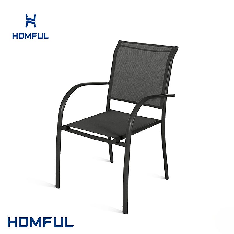 Los asientos de exterior son más prácticos cuando el espacio está concurrido: las sillas se mueven, se mueven, se apilan después de cerrar y se vuelven a colocar a la mañana siguiente. El modelo 11D11K está diseñado para ese ciclo. El marco de aluminio con recubrimiento en polvo mantiene la estructura ligera para que el personal la maneje, pero estable para el uso comercial diario. Su perfil de reposabrazos aporta comodidad y una postura de comedor "terminada" sin que la silla resulte voluminosa, ideal para distribuciones donde el espacio y el flujo de tráfico son importantes. El asiento y el respaldo de malla con revestimiento de PVC ofrecen las ventajas para exteriores que más buscan los clientes de hostelería: flujo de aire y secado rápido. Tras una lluvia ligera, derrames o humedad en la piscina, la superficie de la malla se seca más rápido que los asientos acolchados tradicionales y es más fácil mantener su aspecto impecable: se limpia, se enjuaga y ya está listo para el siguiente turno de mesa.