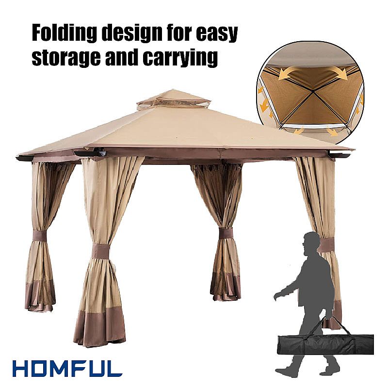 Protegerse del sol abrasador y disfrutar de la barbacoa a la sombra es posible con el cenador grill de Homful Group. El cenador para jardín será una excelente elección si es usted chef. Con un diseño único, como una gran parte superior de ventilación, este cenador para barbacoa puede satisfacer sus expectativas de un cenador para barbacoa práctico. Este cenador para barbacoa es lo último en protección para barbacoas, con un tejido de toldo duradero y resistente y postes fuertes y estables.